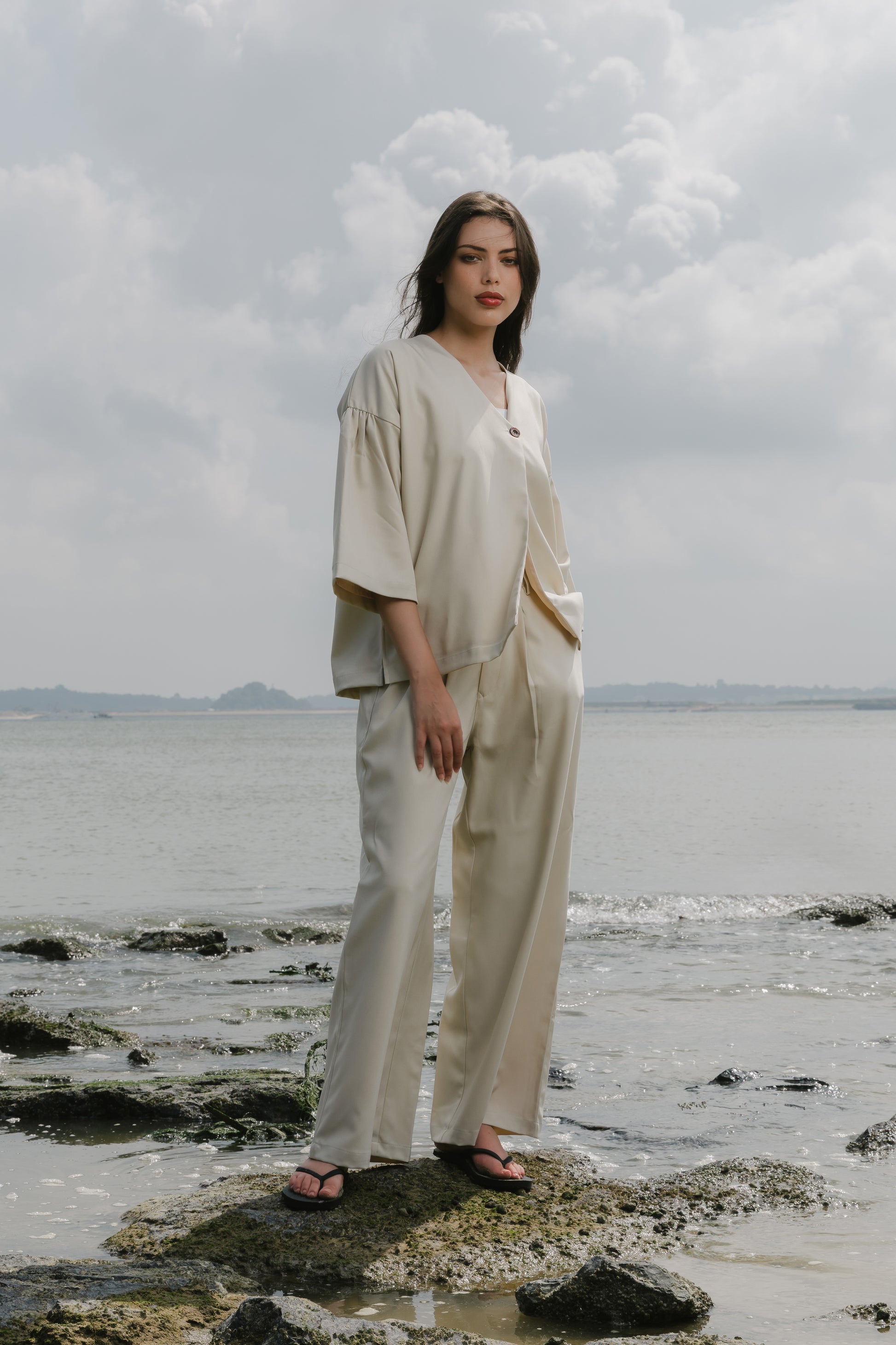 Effortlessly grounded. The Aira Pants offer tailored ease with a fluid drape, resting gently at the waist and flowing into a wide-leg form—refined, breathable, and made for everyday rhythm.