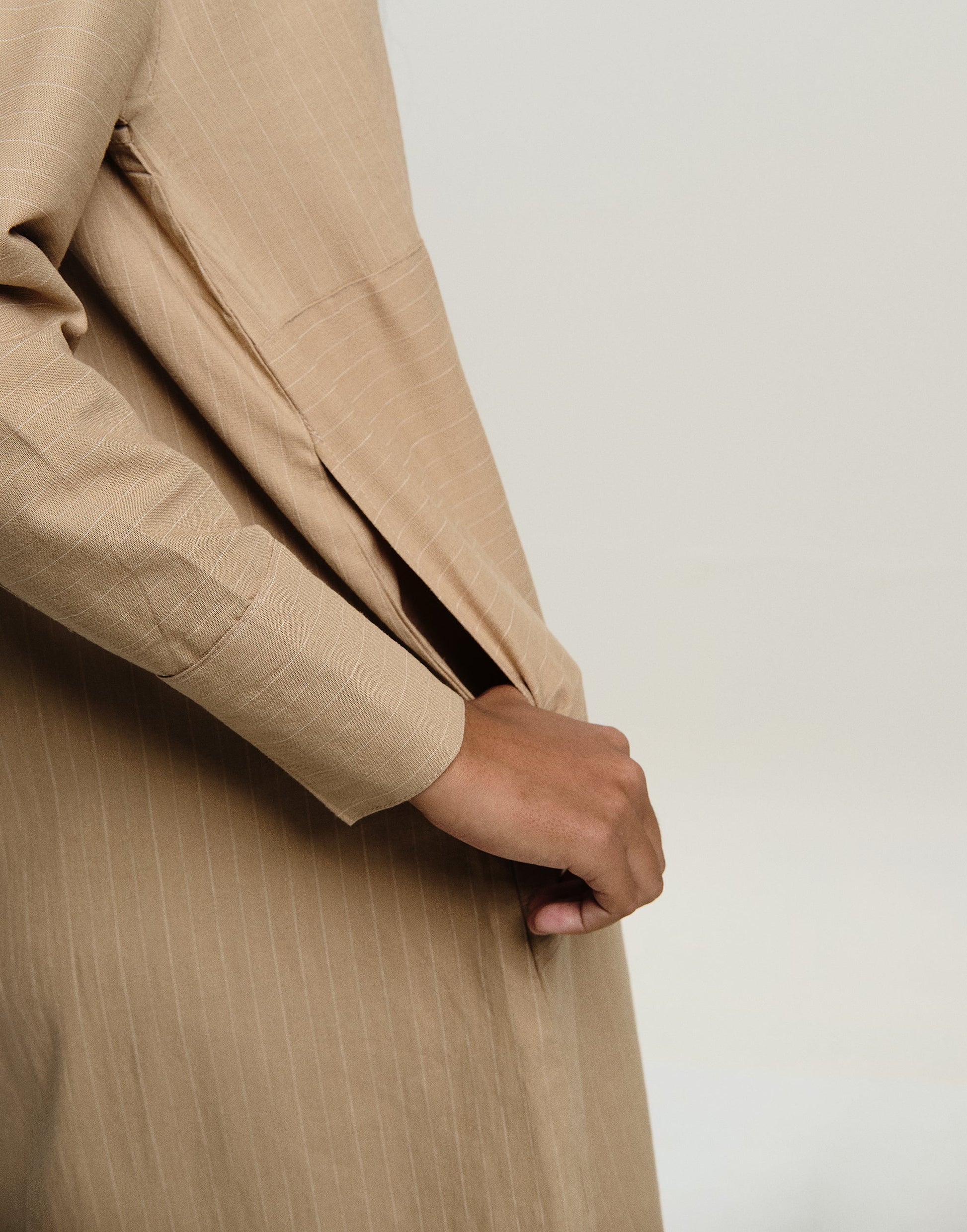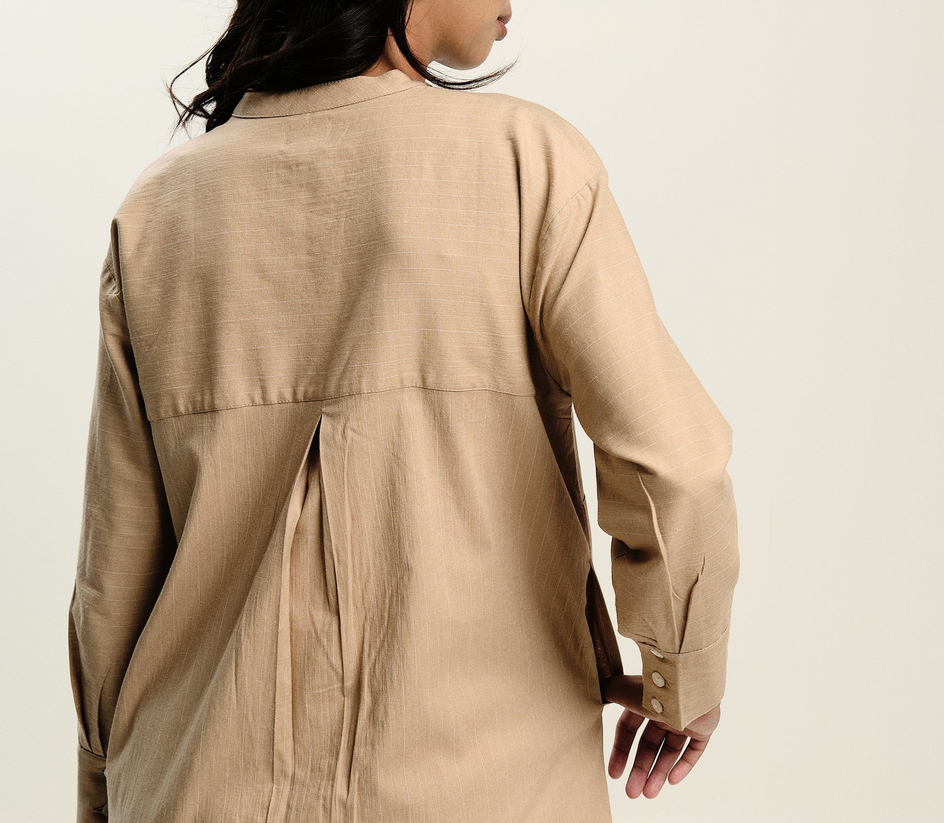 - Long cuffed sleeves with buttons